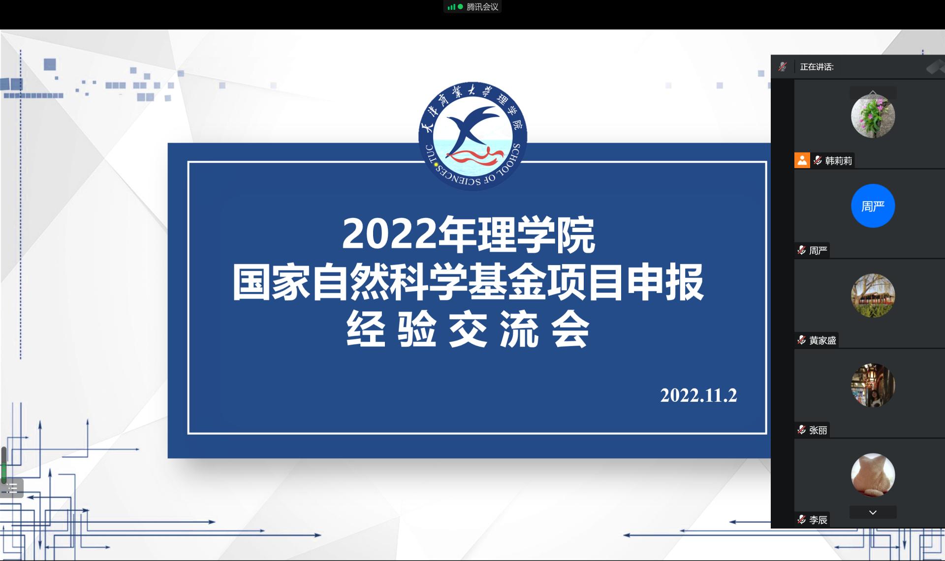 11月2日下午,理学院线上召开国家自然科学基金项目申报经验交流会暨2023年国家级基金项目申报动员会。会议邀请学院2022年获批国家自然科学基金项目的李辰老师和张丽老师分享成功经验。学院领导班子成员、师生30余人参加。会议由副院长周严主持。