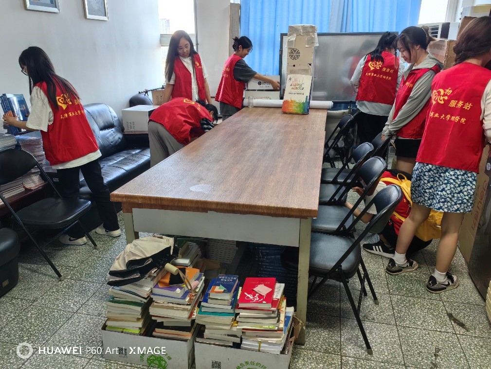 活动中,毕业生党员依托初心服务站积极主动投入一系列志愿服务活动中。毕业生党员开展了毕业生档案整理、学院办公区域卫生打扫、期刊报纸整理等各项活动,同时毕业生党员深入到各个宿舍,帮助离校同学打扫宿舍、搬运行李,协助同学们解决各项困难,倡导学生文明离校。