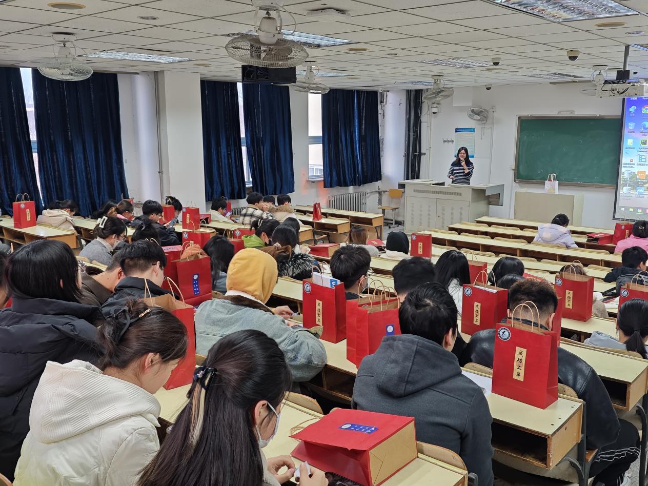马怡然老师以自身考研经历为切入点,深入浅出地诠释了考研不同复习阶段可能遇到的压力、焦虑,并与同学们分享了纯音乐、冥想练习、健手操等缓解压力的方法。辅导员朱玉为同学们抽取了20个由理学院心理协会送来的祝福锦囊,并发放了学院为同学们精心准备的备考文具、御寒暖贴等物品。活动氛围十分轻松愉悦、暖心温馨。