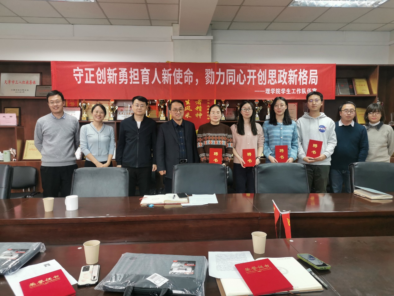 12月15日下午,理学院在一教806会议室举行博士辅导员藏媛、霍慧霞、郭靓靓、赵宏亮期满工作总结会暨学业导师聘任仪式。理学院党委书记梁强、院长安建业、党委副书记王素芳,以及全体辅导员参加。会议由党委副书记王素芳主持。