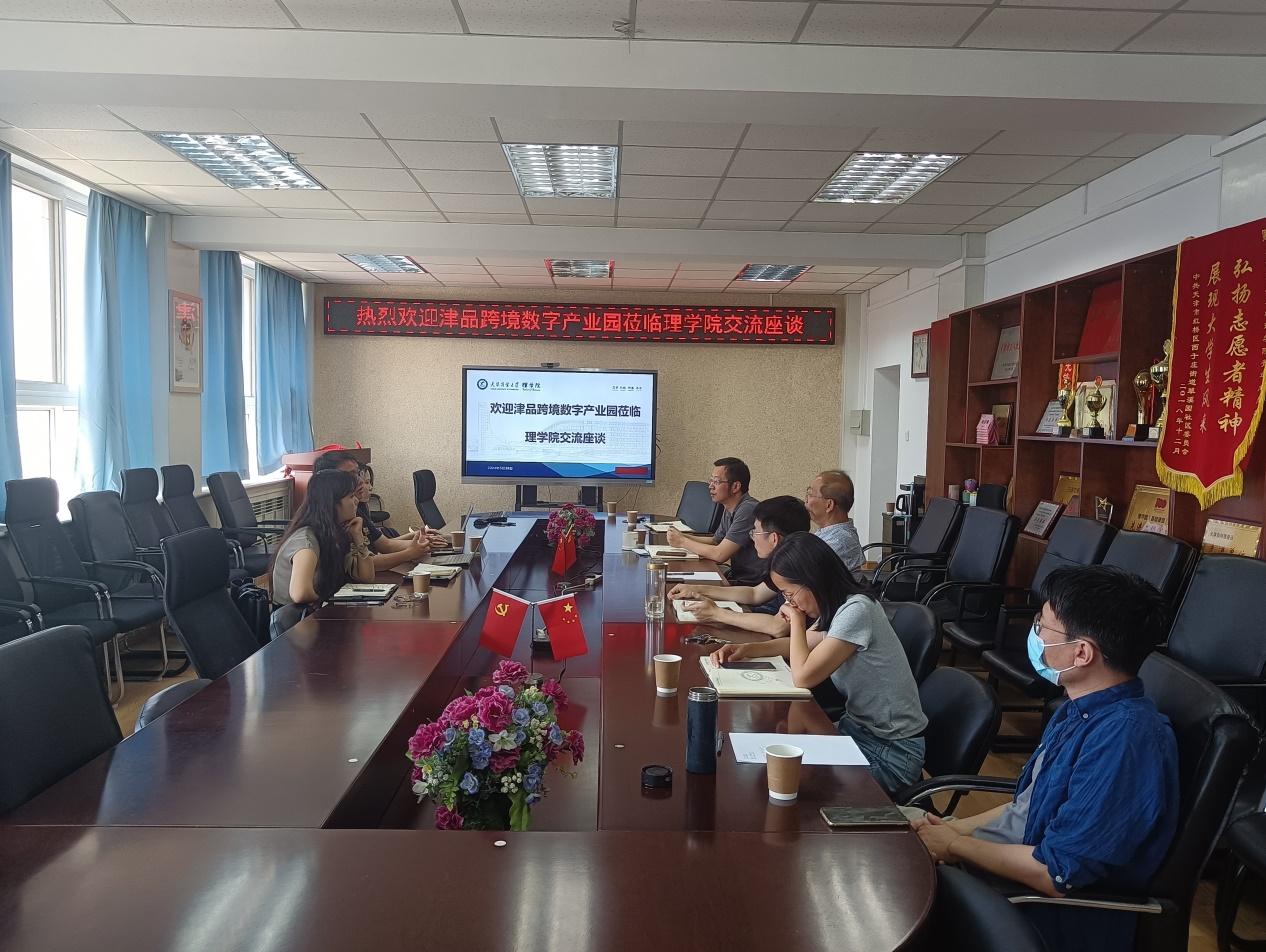 5月27日下午,津品跨境数字贸易产业园创始人万晓文、总裁助理李林霖及相关工作人员到理学院交流座谈。天津商业大学老字号协同创新中心秘书长梁新义,理学院(基础课部)党委书记梁强、院长唐文广及系室主任代表参加座谈。