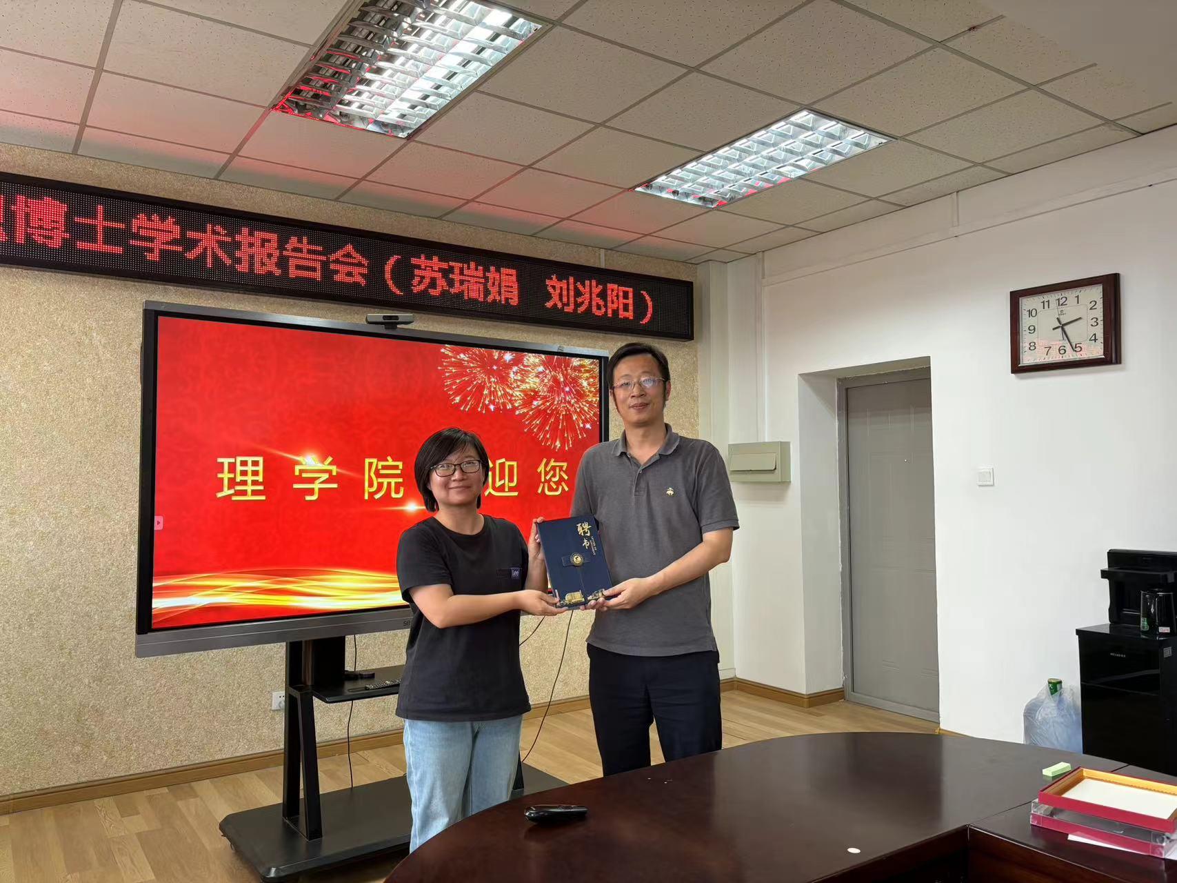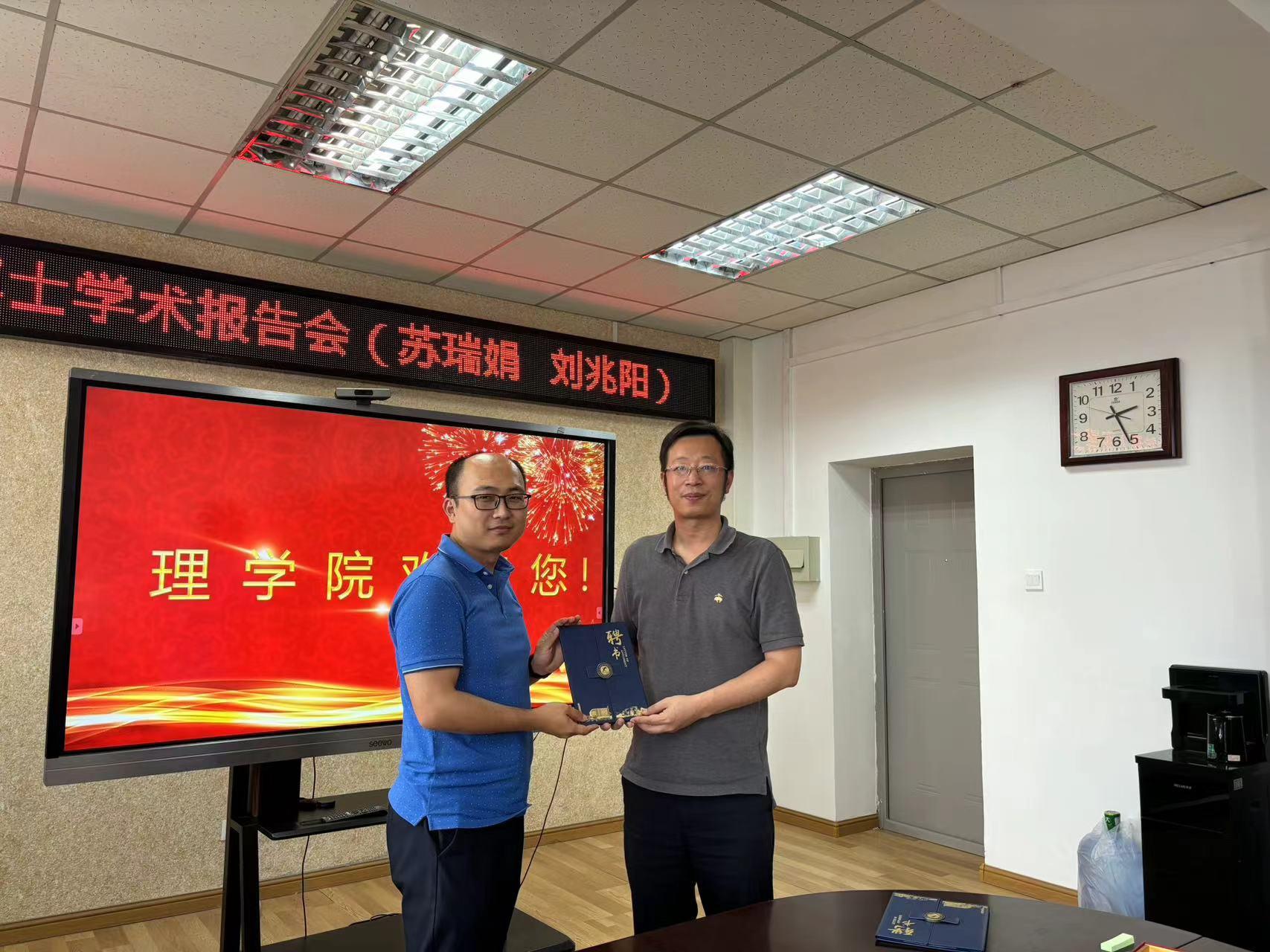 5月29日,理学院在1号教学楼806会议室举行刘兆阳、苏瑞娟博士入职学术报告会。学院领导班子成员、青年教师及研究生参加。报告会由学科与科研办公室主任韩莉莉主持。
