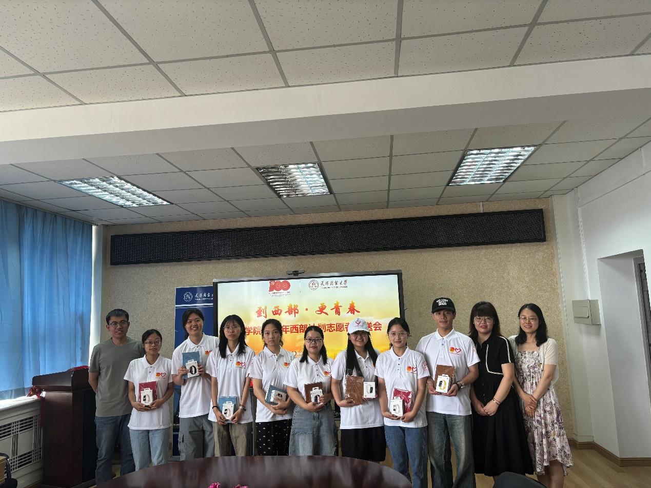 毕业年级辅导员乔亮表达了对志愿者们的不舍和祝福,他叮嘱同学们要保重身体,遇到困难随时联系母校,天商永远是他们的家。狄佩佩就西部计划的实施意义、招募条件、福利政策等内容进行宣讲,号召低年级以学长学姐为榜样,勇于将个人理想与祖国发展紧密融合,到祖国最需要的地方建功立业。