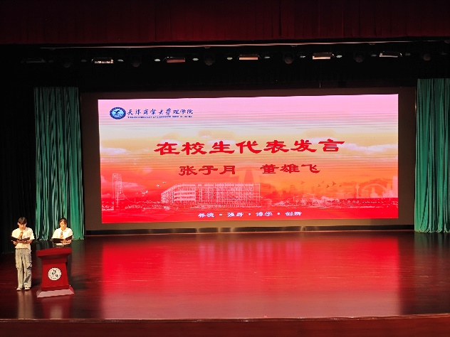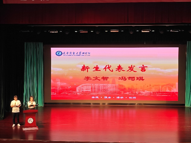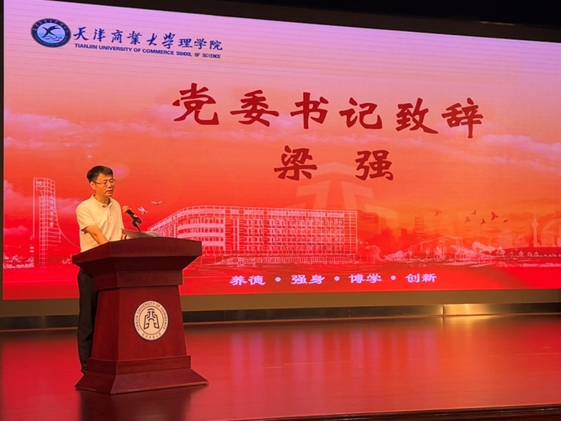 梁强书记为开学典礼致辞,他热烈欢迎同学们加入天商理学院大家庭,详细介绍了学校、学院的发展历史,向同学们提出天商的“大学三问”:大学是什么、大学学什么、大学毕业后干什么。结合当下社会的发展讲解了学院培养人才、促进新生成长所搭建的各类平台。最后,梁强书记希望新生们在天商历练成长,学有所成、研有所进,以最好的青春、最美的奋斗与天商相遇。
