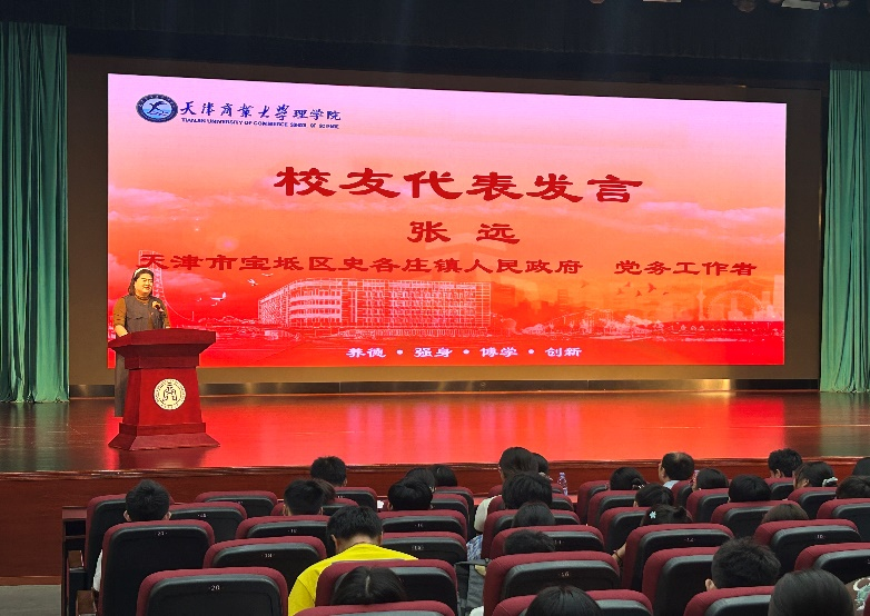 理学院2017届优秀校友张远在发言中,结合自己的学习和工作经历向学弟学妹们分享成长的感悟,叮嘱他们提前谋划未来,成就自律人生;摆正自身心态,积极向上社交;不断提升认知,珍惜大学时光。