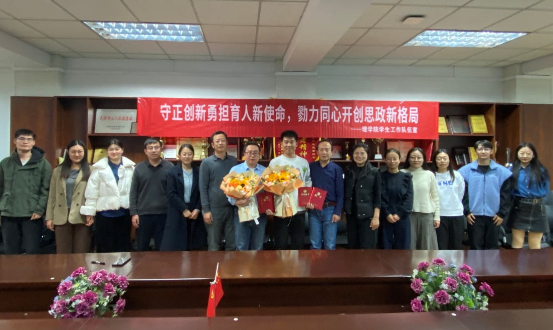 垢宝印为聂永胜、陈飞超、朱玉颁发了理学院“优秀辅导员”荣誉证书。他对三位老师在辅导员岗位工作期间付出的辛勤工作表示感谢,对他们敢于担当的敬业精神表示赞赏。勉励学工队伍要进一步发挥良好的传统,不断锐意进取,在学生成长的道路上给予他们更多的引导与支持。