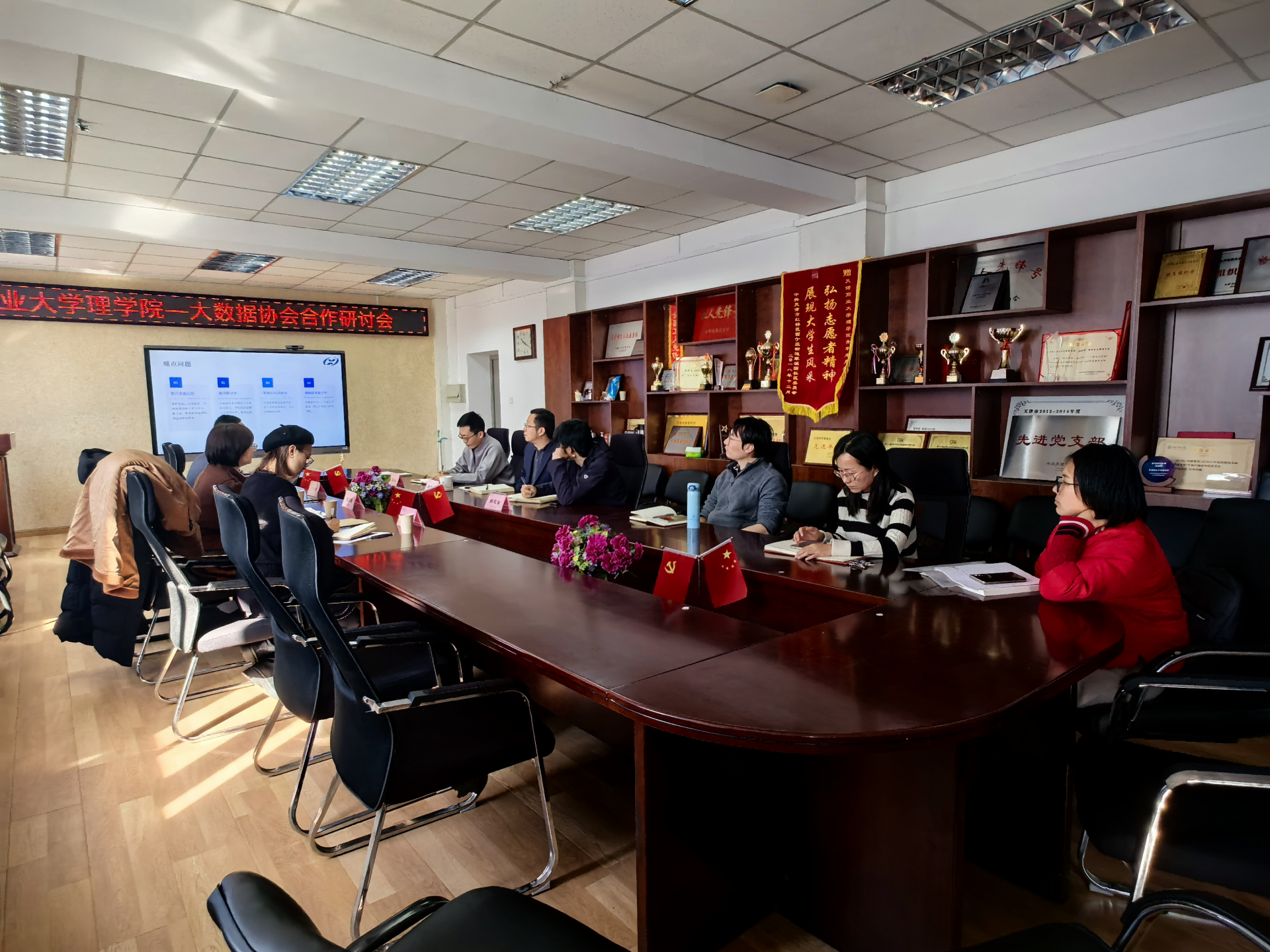 随后,双方在前期合作的基础上,围绕产教融合、实习就业、AI赋能、项目合作及成果转化等议题展开了深入讨论。理学院各系主任结合学科特点,提出了多项合作建议,得到了协会一行的积极回应。双方一致认为,通过深化合作,可以充分发挥各自优势,推动大数据技术与教育、产业的深度融合。